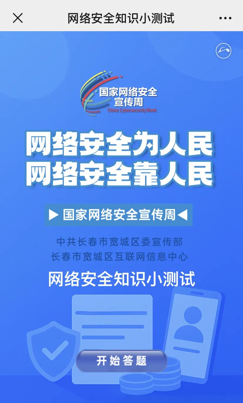 2025年国家网络安全宣传周于9月15日至21日在全国范围内展开,为进一步提升大学生网络安全意识和防护技能,9月15日长春市宽城区互联网信息中心联合我校,组织学生积极参加了网络安全知识线上测试活动。