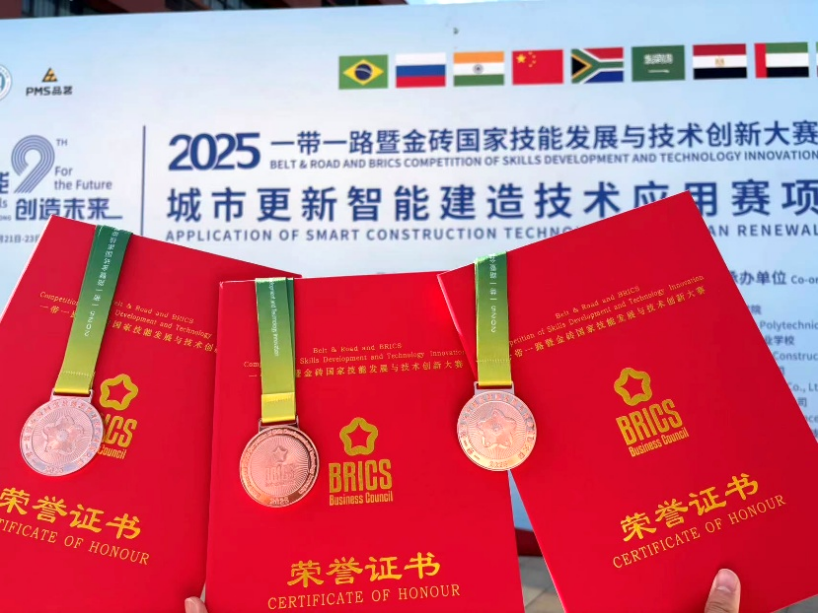 此次获奖不仅是对参赛师生辛勤付出的充分肯定,更为学校高质量发展注入了强劲动力,带来多维度积极成效:在专业建设方面,赛事成果进一步验证了我校智能建造等相关专业课程体系与行业前沿需求的高度适配性,为后续深化专业改革、争取优质实训资源、拓展校企合作空间奠定了坚实基础,助力学校打造特色鲜明的专业品牌;在人才培养方面,以赛事为纽带,进一步深化了 “以赛促教、学练结合” 的育人模式,推动教学内容更贴近行业实际,促使实践教学环节不断优化升级,为培养更多适应行业发展需求的技术技能型人才提供了有力支撑;在声誉提升方面,作为金砖国家级赛事的获奖单位,学校的行业影响力与同类院校认可度显著增强,既为招生工作增添了亮点,也为学校参与更高层次的行业交流、项目合作创造了有利条件;在师生成长方面,指导教师积累了高水平赛事的指导经验,教学实践能力得到进一步提升,参赛学生的专业技能与实践视野实现双向拓展,同时也为全校师生树立了榜样,激发了更多师生参与学科竞赛、投身专业提升的积极性与主动性。