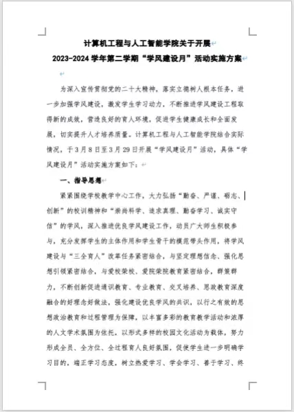 为深入宣传贯彻党的二十大精神,落实立德树人根本任务,进一步加强学风建设,激发学生学习动力,不断推进学风建设工程取得新的成效,营造良好的育人环境,促进学生健康成长和全面发展,切实提升人才培养质量。计算机工程与人工智能学院按照学校统一部署,结合学院实际情况,于2024年3月8日至3月29日开展“学风建设月”活动,学院全院师生高度重视,积极响应“学风建设月”活动精神,深入引导和推进学生树立正确的学习态度、强化自我管理意识、增强学习能力和提高综合素质,现就学风建设月的开展情况、主要活动及其成效进行总结。