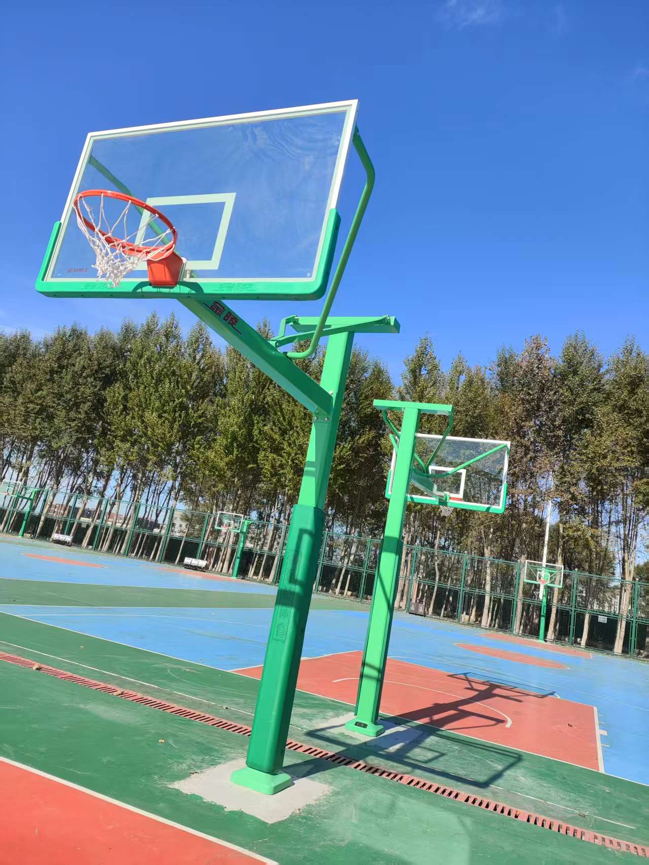 此次采购的篮球架经过多轮筛选与专业评估,采用加强型单臂承重结构,可有效抵御户外复杂环境影响,避免长期使用中的形变风险;篮板选用高强度钢化玻璃材质,兼具抗冲击性与透光性,既符合国家标准安全要求,又能还原清晰运动视野,完美适配学生日常体育教学、课后训练及校园篮球赛事等多元场景。