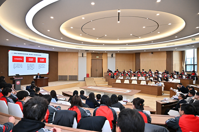 12月9日,吉林省住房和城乡建设厅党组书记、厅长刘李峰莅临我校,围绕“深入学习贯彻党的二十届四中全会和中央城市工作会议精神 奋力建设吉林特色现代化人民城市”这一主题,为师生讲授了一堂生动的思政课。学校党委书记韩秋叶主持活动,董事长、学校领导班子成员、马克思主义学院全体教师及部分学生代表到现场学习。