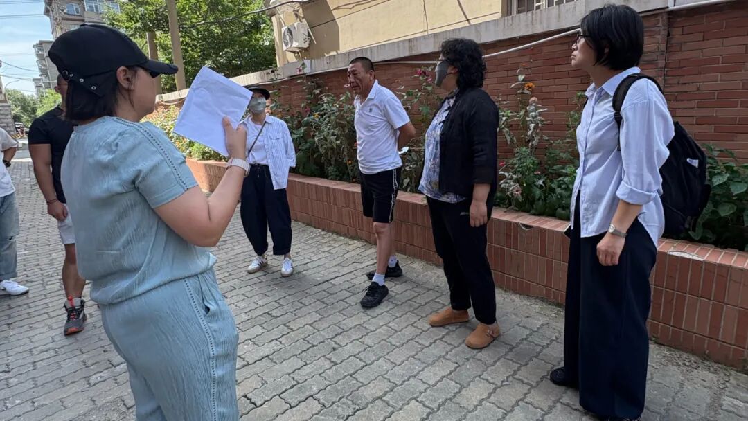 调研过程中,四校教师团队徒步完成了对 26 公顷用地的全覆盖踏勘,现场记录建筑年代、质量、层数及权属信息 ;利用激光测距仪、无人机航拍等数字化手段获取高精度现状数据 ;并与属地街道、社区代表及居民代表进行面对面访谈,充分了解居民对停车、日照、绿化、公共服务设施的真实诉求。