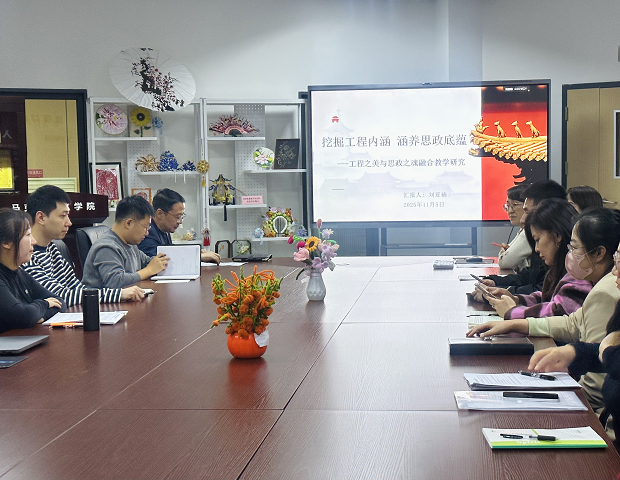 为深化课程思政建设,提升中青年教师将工程内涵与思政元素有机融合的教学能力。11月5日,马克思主义学院在产业楼326室举办中青年教师能力提升沙龙活动。本次活动邀请学院科研副院长刘亚楠主讲,主讲题目:挖掘工程内涵・涵养思政底蕴——工程之美与思政之魂融合教学研究,马克思主义学院全体教师参会。