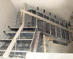 现浇钢筋混凝土楼梯是指将楼梯段、平台和平台梁等构件,在施工现场支模,绑扎钢筋并浇筑混凝土而成的一个整体的楼梯。