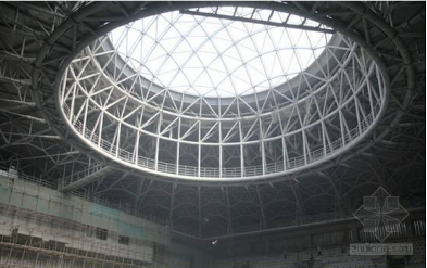张弦结构是一种大跨度预应力空间结构体系,也是混合结构体系发展中一个成功的创造。张弦结构作为一种新型的结构形式,近年来在实际工程中得到越来越广泛的应用。其结构体系由抗弯刚度较大的刚性构件和高强度拉索组成,自重较轻,可以跨越很大空间。张弦结构作为一种半刚性结构,其整体刚度由刚性构件截面尺寸和结构体系的空间几何形体两方面共同组成,整体刚度和几何形态与施工过程密切相关,结构体系成型前刚度较弱,因此需要对张弦结构的施工方案进行合理选择并对施工过程进行严格控制。