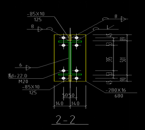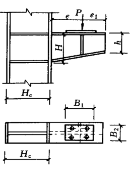牛腿一般采用焊接工字形截面短梁,与刚架柱焊接连接。牛腿根部尺寸可根据剪力和弯矩确定。一般可认为弯矩由根部的上、下翼缘板承担。牛腿可采用等截面,也可采用变截面;当采用变截面牛腿时,端部截面高度不宜小于根部高度的1/2。