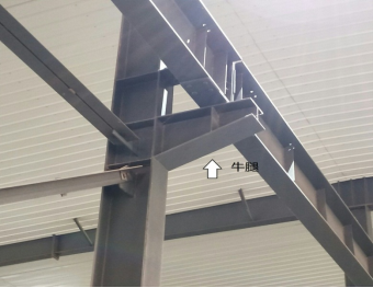 牛腿是在刚架柱上设置的悬臂构件,当门式刚架轻型房屋内设有吊车时,牛腿用来支撑吊车梁。