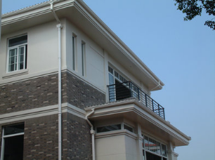 1.考挑檐板自重平衡的挑檐做法:是将预制挑檐板平放在屋面板上,以挑檐自重来地炕倾覆。它适用于挑出长度不大、外排水做法的挑檐。由于挑檐板和屋面板的顶面不处于同一标高,在屋面板上要用较厚的保温层找出泛水,所以屋面恒载较大,在选择屋面板时,要根据计算荷载,选择荷载等级较大的屋面板,如预应力多孔板、槽型板。