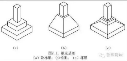 建筑物上部结构采用框架结构或单层排架结构承重时,基础常采用圆柱形和多边形等形式的独立式基础,这类基础称为独立式基础,也称单独基础。