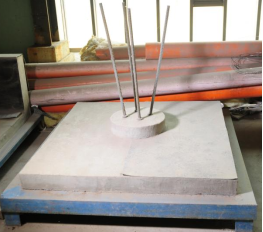 图7 浇筑垫层混凝土 图8 放置桩芯钢筋并浇筑桩芯混凝土