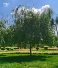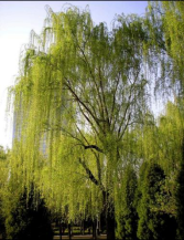 园林用途:旱柳枝条柔软,树冠丰满,是中国北方常用的庭荫树、行道树。常栽培在河湖岸边或孤植于草坪,对植于建筑两旁。亦用作公路树、防护林及沙荒造林,农村“四旁”绿化等,是早春密源树种。防护林及绿化树种,亦可作用材树种。树形美,易繁殖,深为人们喜爱。其柔软嫩绿的枝条 、丰满的树冠及稍加修剪的树姿,更加美观。适合于庭前、道旁、河堤、溪畔、草坪栽植。在北方园林,柳属的一些绿化树种是落叶树种中绿期最长的一种。但由于种子成熟后柳絮飘扬,故在工厂、街道路旁等处,最好栽植雄株。持条、插干极易成活,亦可播种繁殖,绿化宜用雄株。
