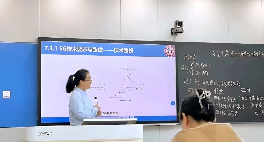 此次竞赛中,崔文博教师以《交通通信与网络传输技术》第七章“第五代移动通信系统关键技术”为教学内容,围绕5G三大核心应用场景展开教学:针对增强型移动宽带(eMBB),结合交通摄像头高清画面传输案例阐释其高数据传输速率优势;围绕大规模机器类通信(mMTC),以海量交通设备联网场景为例解读其高连接密度特性;聚焦超高可靠和低延迟通信(uRLLC),结合无人驾驶汽车通信保障需求说明其毫秒级时延价值。同时,她深入剖析大规模MIMO技术原理与关键要点,让抽象技术知识与交通行业实践深度融合。