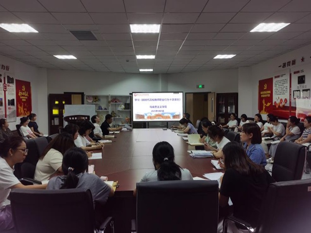 2025年9月10日是我国第41个教师节,根据《中共中央国务院关于弘扬教育家精神加强新时代高素质专业化教师队伍建设的意见》文件精神以及教育部办公厅《关于做好庆祝第41个教师节有关工作的通知》要求,学校将开展庆祝教师节的系列活动。9月5日下午,马克思主义学院组织全院教师在现代产业学院开展《新时代高校教师职业行为十项准则》专题学习活动。