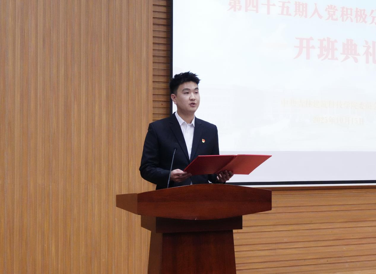 2025年10月15日,学校第四十五期入党积极分子培训班开班式在土木工程馆一楼报告厅隆重举行。校党委副书记、副校长、党校校长孙绍霞,党委组织部部长、党校副校长王文广,各党总支书记、党校办公室成员及380名入党积极分子学员参加典礼。典礼由党校办公室主任主持。