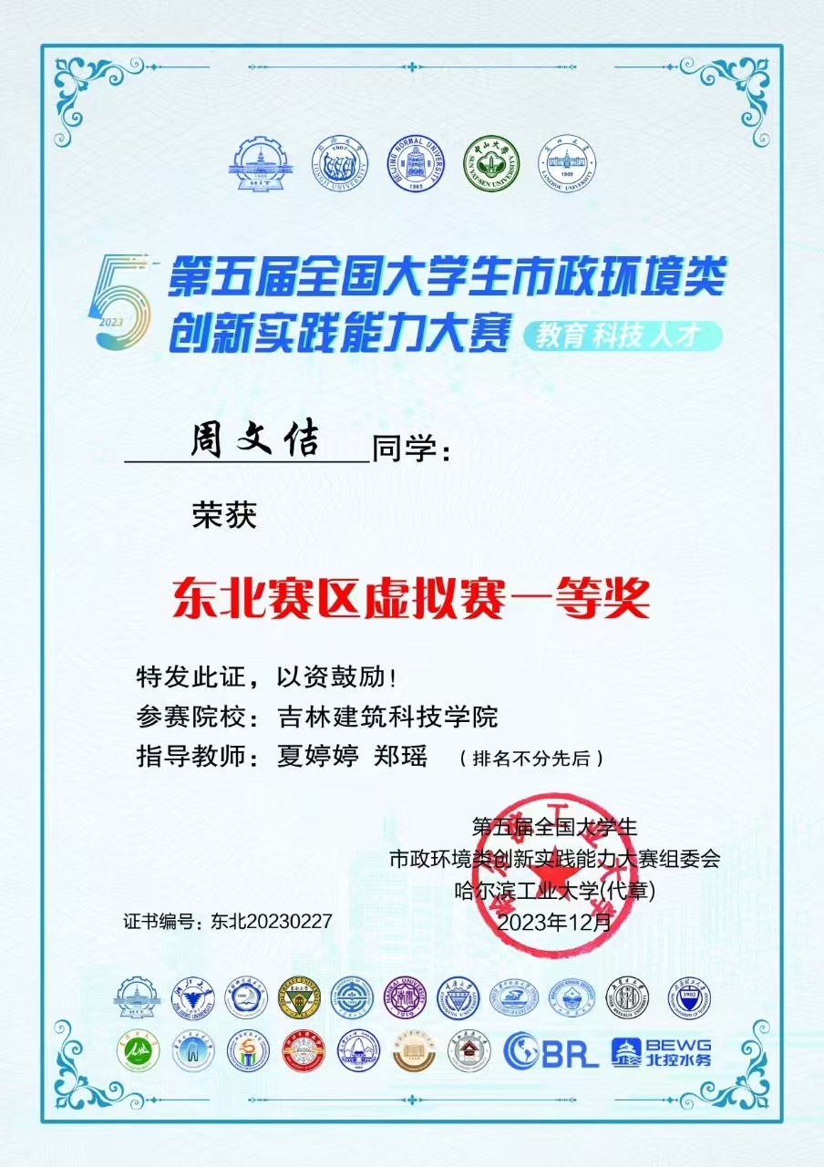 在大学的广阔天地里,每一位学子都在用自己的方式书写着属于自己的青春篇章。今天,让我们聚焦能源与环境工程学院环境工程21级1班周文佶,他不仅以优异的成绩在学业上屡获佳绩,更以积极的生活态度和对待命运的坚韧精神向我们展示了“有志者,事竟成”的真谛。他用实力与才华点亮了属于自己的璀璨星光。 姓名:周文佶 性别:男 班级:环境工程21-1班 政治面貌:群众 获奖荣誉:2021学年第一学期获得三等奖学金、2021学年第二学期获得二等奖学金;2022学年第一学期获得三等奖学金;2023学年第一学期获得二等奖学金、2023学年第二学期获得一等奖学金;2024学年第一学期获得一等奖学金、2024学年第二学期获得一等奖学金、国家奖学金;2024年”第五届全国大学生市政环境类创新实践能力大赛“吉林赛区化验赛二等奖,虚拟赛一等奖,团体二等奖。获第九届全国大学生生命科学竞赛(科学探究类)省一等奖,国家二等奖。 座右铭:目之所及,皆为可往 在学习过程中,周文佶刚步入大学校园时,他与很多新生一样,是班级中众多面孔里的一位,成绩中等,不显山露水。然而,正是这份不显眼的平凡中,孕育着不屈不挠的坚韧。他勤奋好学,有一颗乐于求教的心。每当下课总能看见他与老师探讨问题的身影,与同学间的切磋琢磨,他的努力滋养着他的智慧之树,渐渐地,他的成绩直至跃居班级前列,乃至傲视群雄,独占鳌头。大二那年,他以优异的成绩,轻松跨过了大学英语四级这道门槛,那是他勤奋与智慧的见证。在学习之余他沉浸于阅读和电影去放松沉淀自己。学校图书馆二楼右侧,那些尘封的俄国经典,成了他灵魂的栖息地,尤其是列夫·托尔斯泰的著作。 在生活中,特别是运动方面,则是他释放激情的另一片天地,尤其是跑步,那是他与自我对话的方式,作为校阳光跑团的一员,每一步都踏出了青春的韵律与不屈。对于科学探索,他满怀热忱,在实验室中,他聚精会神地聆听老师的讲解,精心筹备实验材料,以一丝不苟的态度对待每一个研究项目。不论是富有创新性的污水处理厂设计,还是引人入胜的电解污泥降解实验,都强烈地吸引着他,点燃了他对专业知识及未知世界的浓厚兴趣与探索热情。这些经历,如同星辰般点缀在他的学术之旅上,照亮了他前行的道路,也让他更加坚信,知识的海洋浩瀚无垠,唯有不断探索,方能领略其美妙与深邃。 他说:“感激能源学院老师们的付出和同学们的热情,‘目之所及,皆为可往’,我将铭记初心,继续前行。”他的奋斗与成就,是每一位在大学里追梦学子的真实写照。这向我们昭示,无论起点高低,只要心怀梦想,脚踏实地,持之以恒,终将能够到达理想的彼岸。