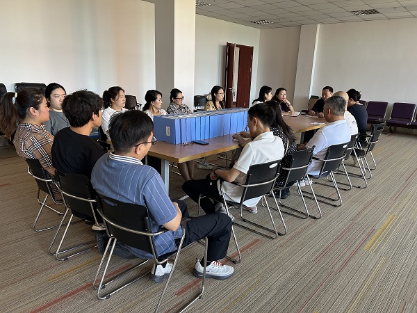 2025年8月20日 ,图书馆在四楼会议室召开强化“十种意识”, 为立德树人赋能,为本科教学工作合格评估做贡献教育大会 ,图书馆馆长董荣作主题教育,全馆人员参加教育大会。