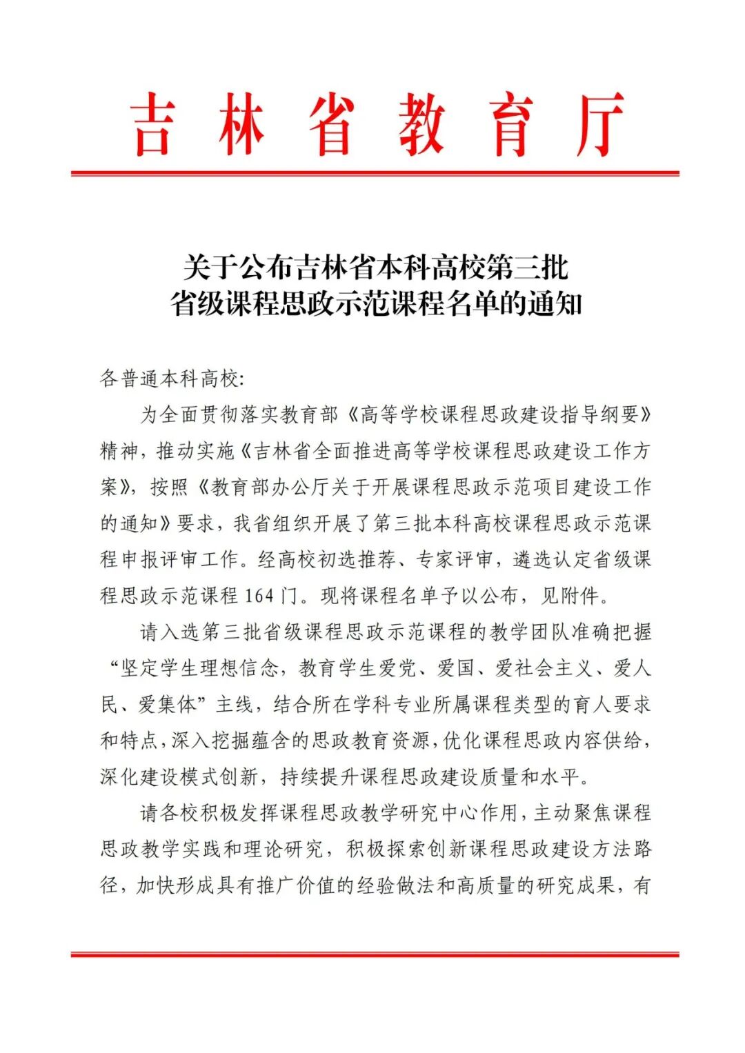 近日,吉林省教育厅公布了“吉林省第三批课程思政示范课程”名单,基础科学部《大学物理》课程(负责人:付静)获评课程思政示范课程。