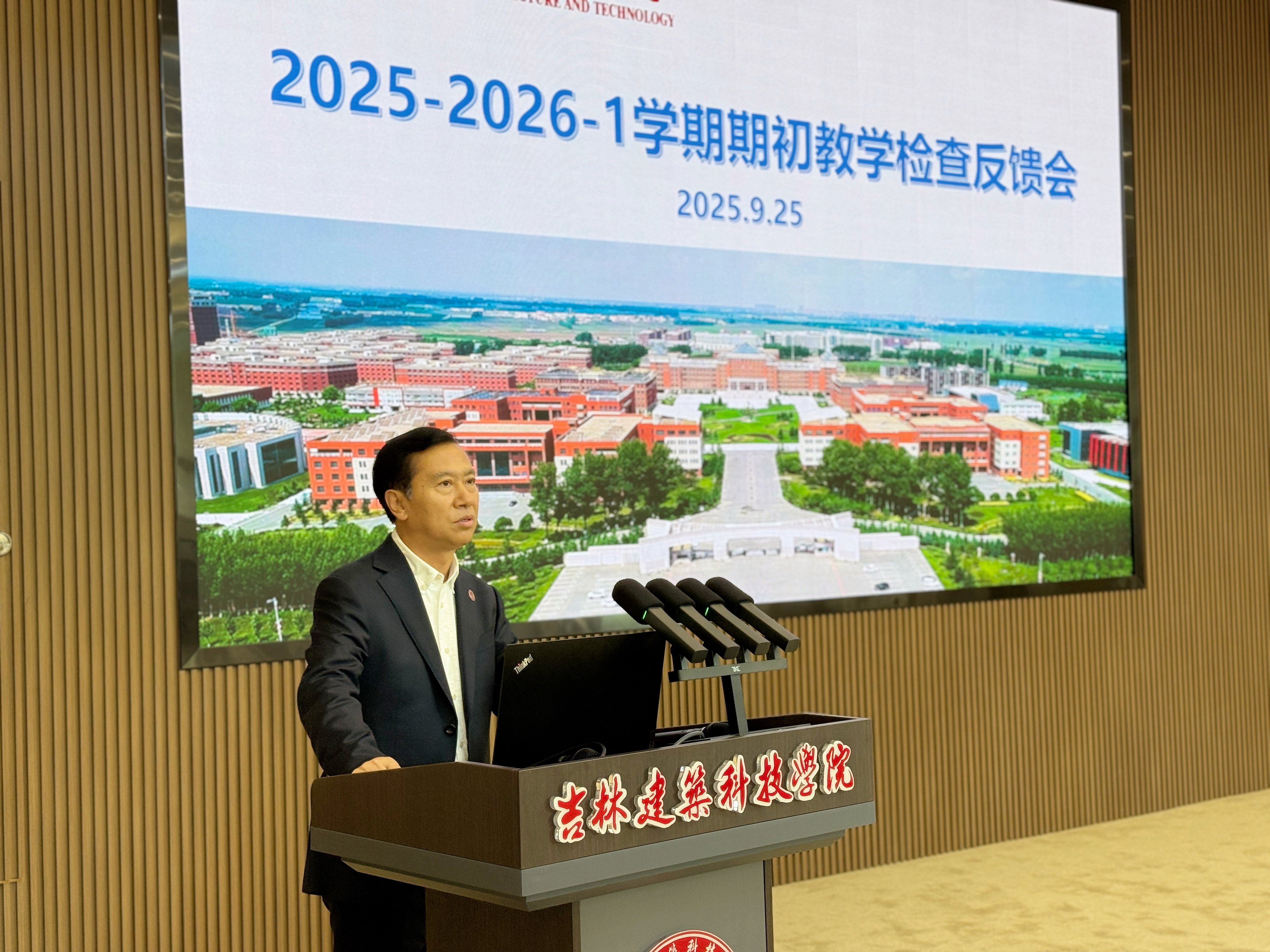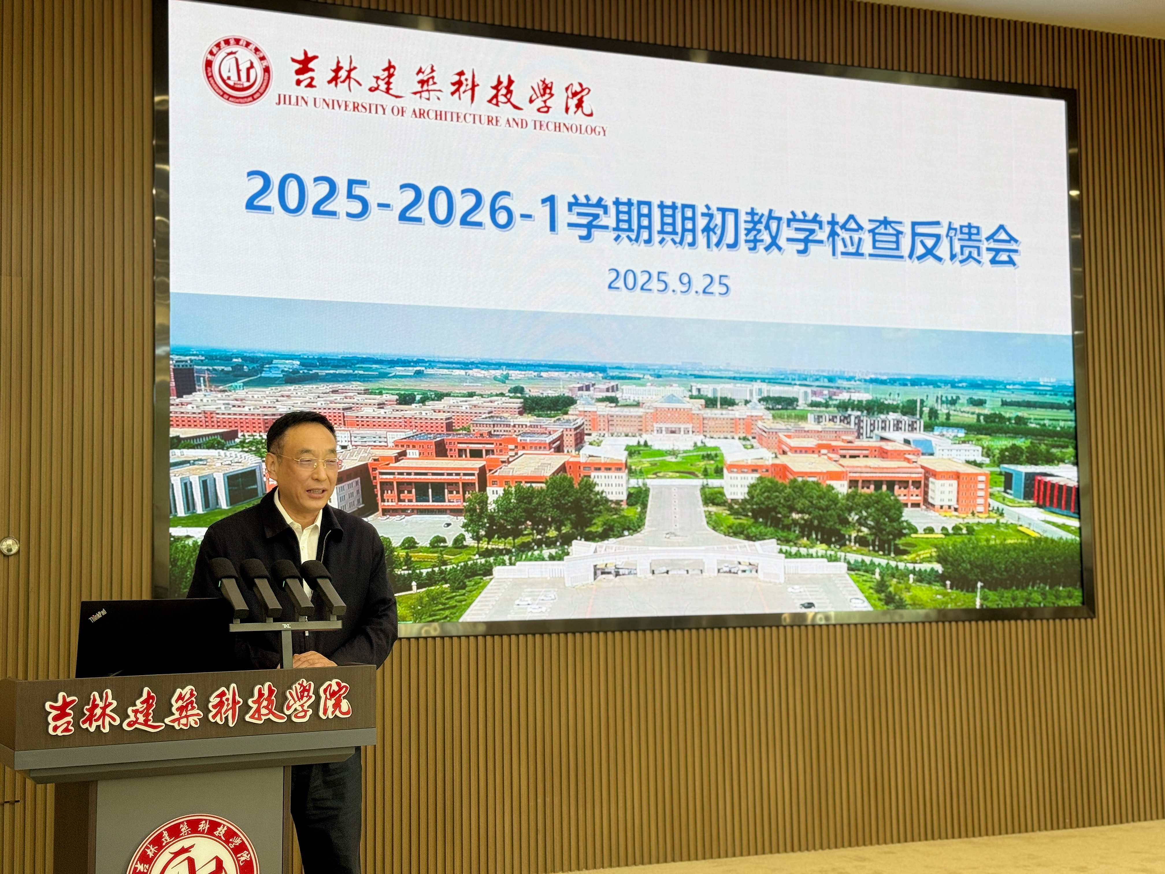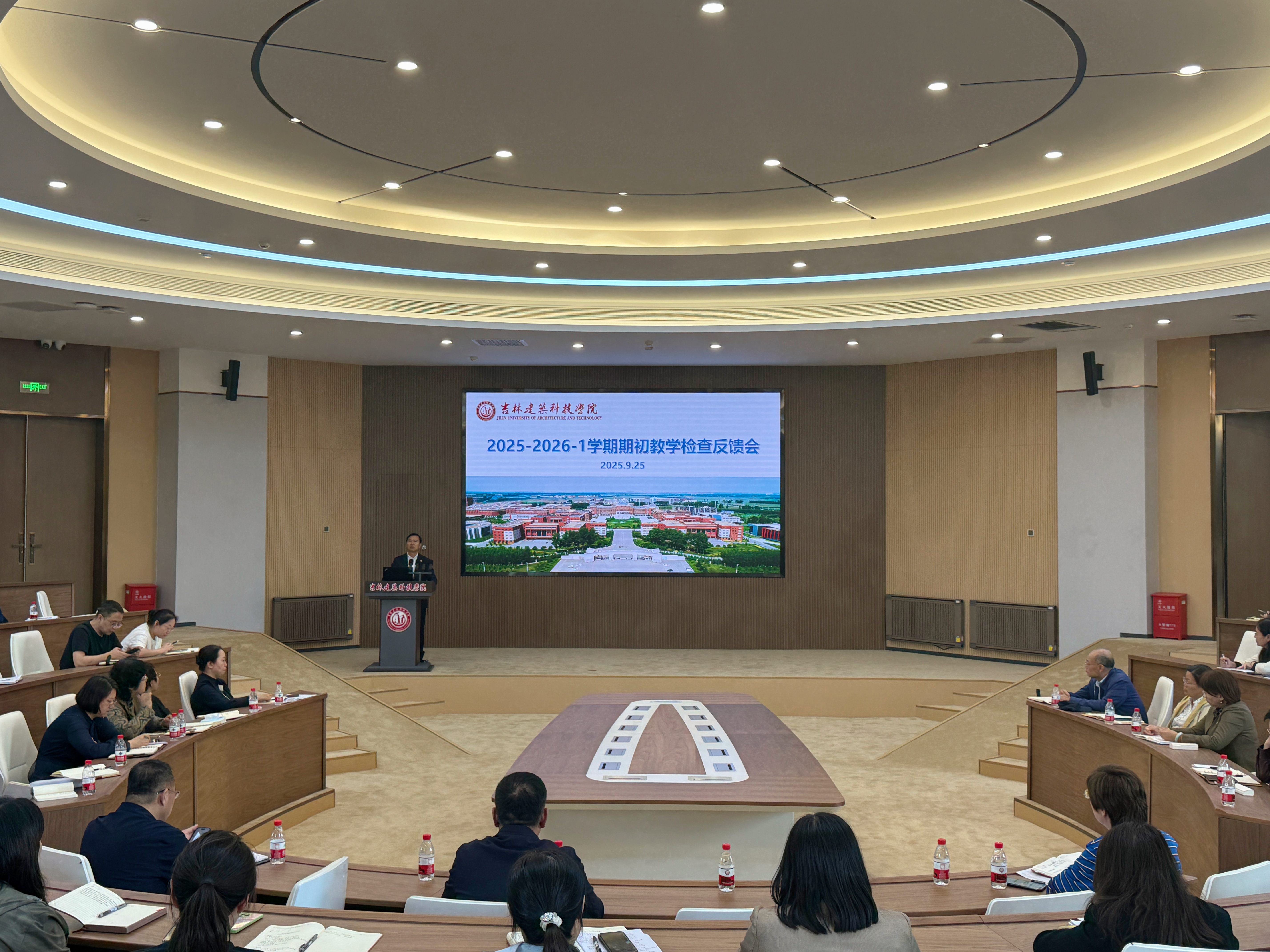为全面总结期初教学检查工作,进一步推进教学规范化建设,提升教育教学质量,并为迎接十月份本科教学工作合格评估专家组入校考察做好充分准备,9月25日下午,学校在国际交流中心组织召开2025-2026学年第一学期期初教学检查反馈会。常务副校长窦立军,教务处、质控办相关人员,督导组全体人员,各教学单位院长(主任)、教学院长(副主任)及教科办主任参加会议,会议由副校长赵海平主持。