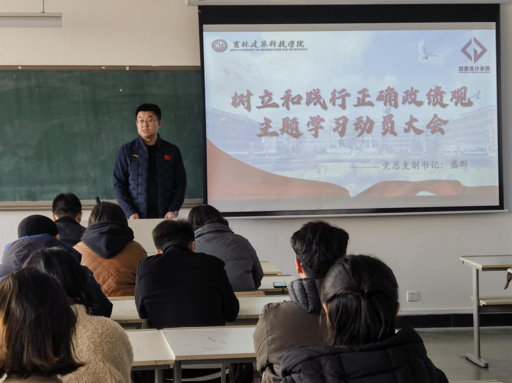 为深入学习贯彻习近平总书记关于树立和践行正确政绩观的重要论述,全面落实学校党委工作部署,2026年3月20日15时创意设计学院党总支于301教室召开树立和践行正确政绩观学习教育动员大会,对全院学习教育进行全面动员与系统安排。学院全体教工党员、学生党员、基层党员领导干部及各党支部书记、委员参会,会议由学院党总支副书记盛群主持。