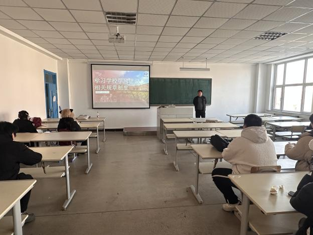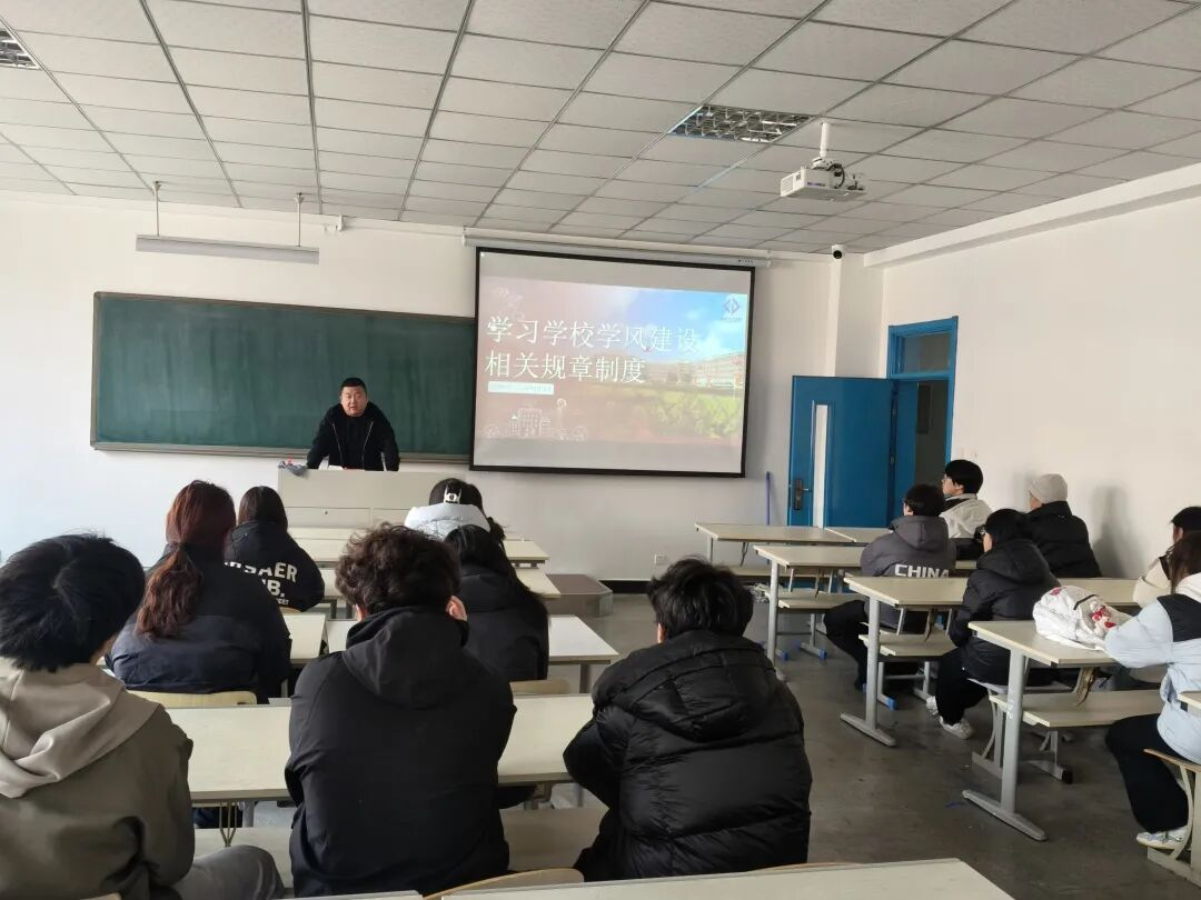 班会上,各辅导员围绕学院学风建设规章制度,从考勤管理、课堂纪律、作业规范、诚信创作与学术道德等方面,强调课堂专注的重要性。同时,各班组织学生学习课堂文明公约,明确强调不迟到不早退、不玩手机、不携带早餐零食、保持教室卫生、尊重师长、认真听讲等具体要求。
